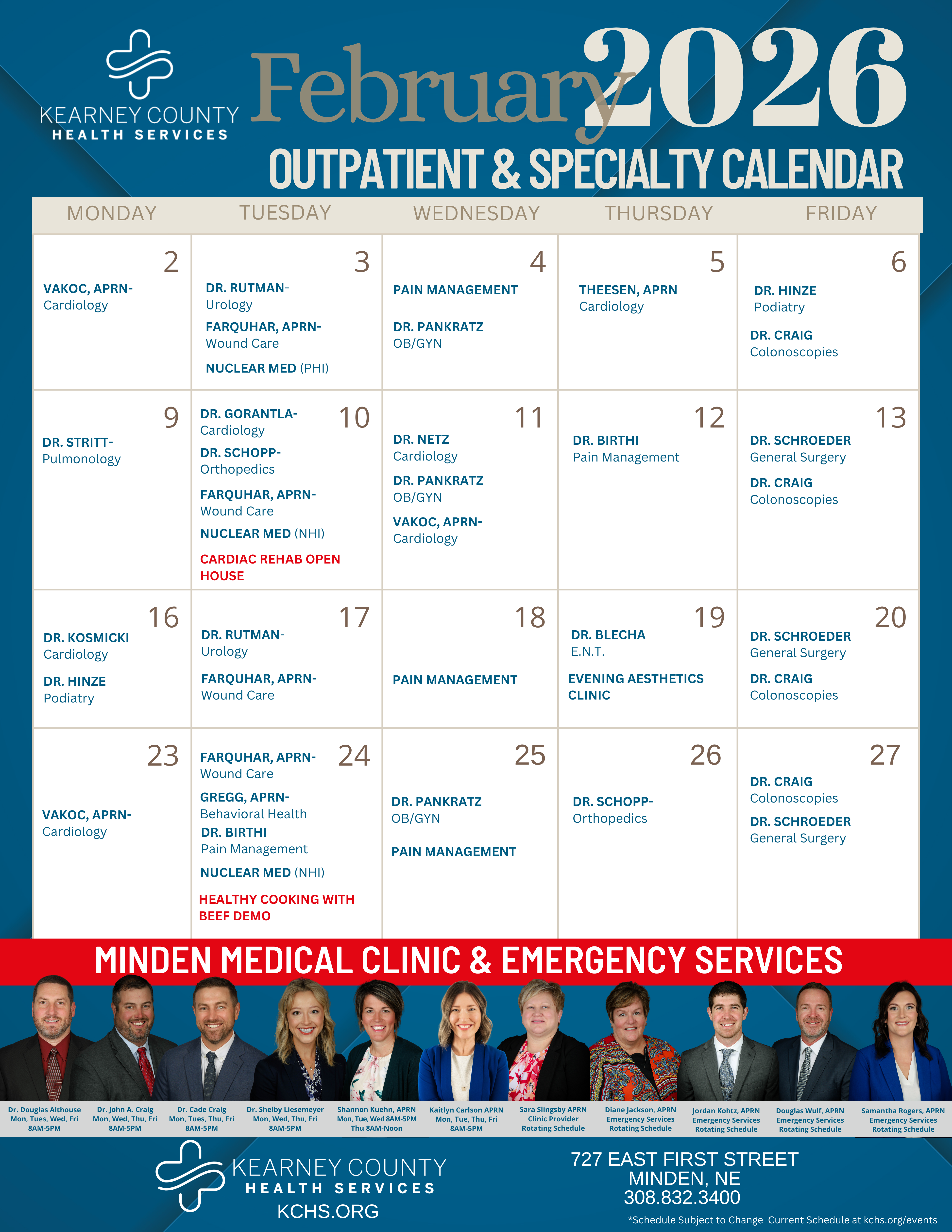 Click Here for KCHS Specialty Clinic EventsDownloadable January 2026 Specialty CalendarDownloadable February 2026 Specialty Calendar